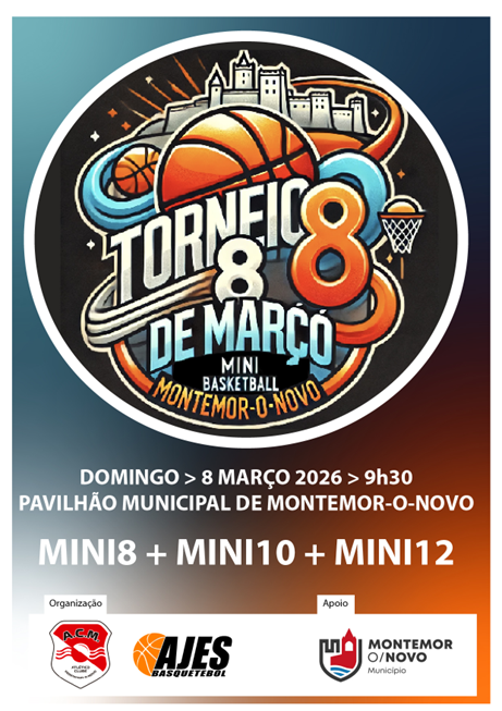 No próximo dia 8 de março de 2026 irá realizar-se o 2º Torneio de Minibasquete, organizado em parceria pelo Atlético Clube de Montemor e AJES Estremoz, para Mini-8, Mini-10, Mini-12.